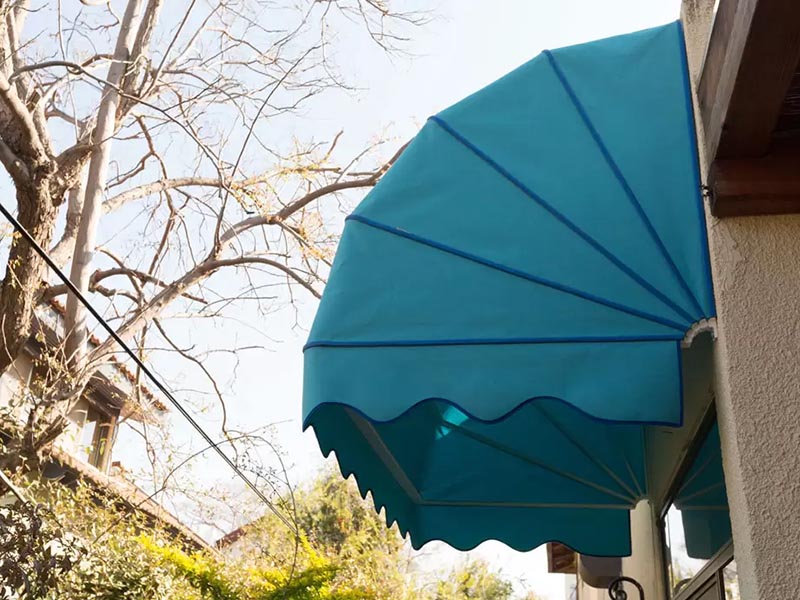 סוכך בעיצוב רבע עיגול המספק הצללה ופרטיות לאורך כל השנה, מתאים לעסקים כגון בתי קפה וחנויות עם דוכני חוץ, וכן לבתים פרטיים.