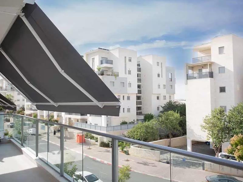 סוכך אנכי חשמלי עם טכנולוגיית רוכסן, מספק פרטיות והצללה עמידה לרוחות, מושלם לדיירי בניינים עם מרפסות המעוניינים בפרטיות ובנוחות מרבית.