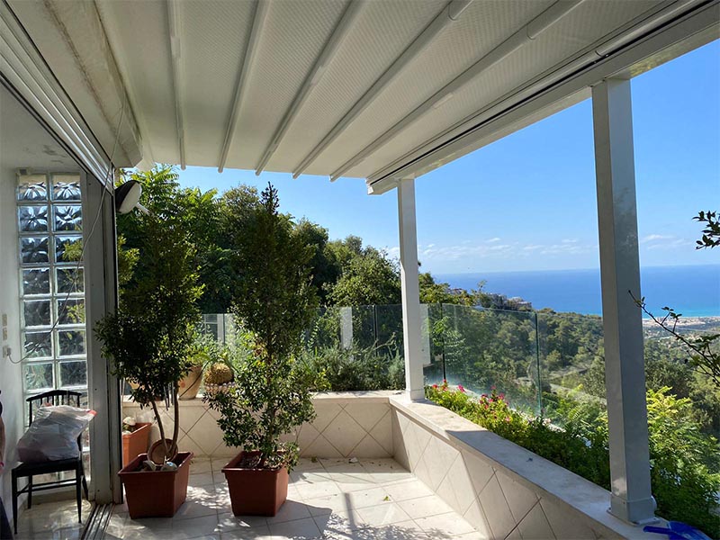 הצללה ללא עמודים, נתמכת על קיר בלבד, מאפשרת שמירה על הנוף.