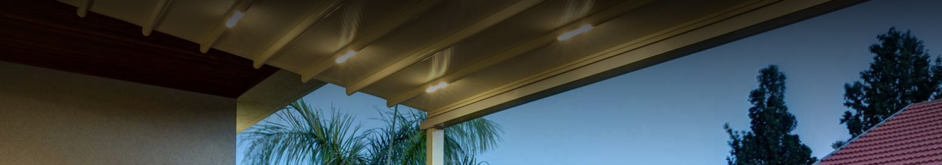 הצללה נתמכת על קיר אחורי עם עמודים, כולל מרזב מים. מתאים לקירוי מרפסות וחצרות.